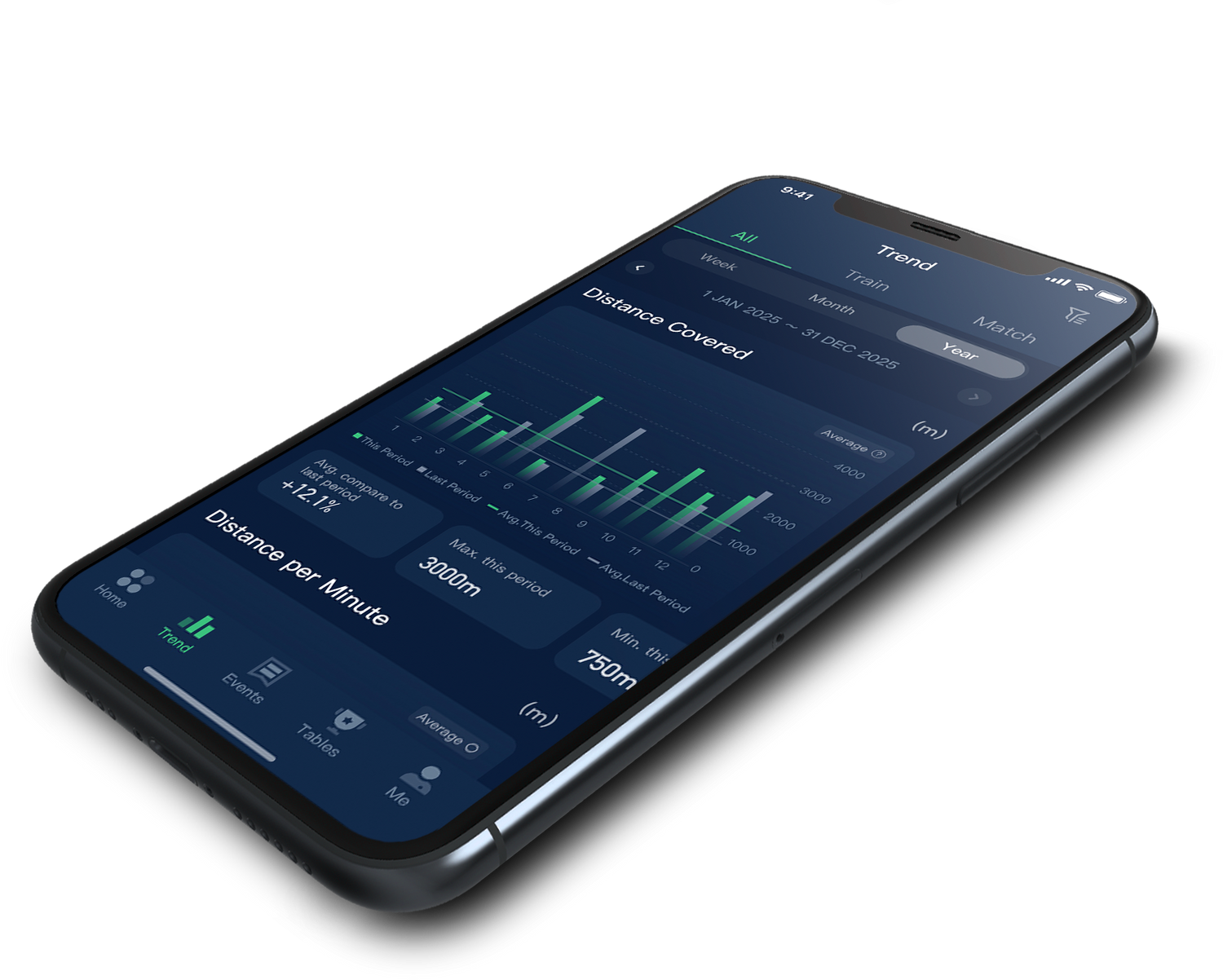 Ultra-light soccer trackers analyzing and processing 540000+ metrics when you train and play, with up to 8h battery life.